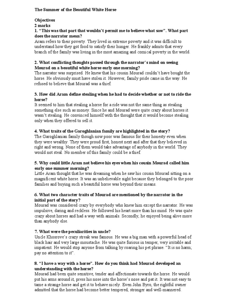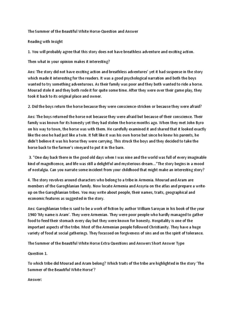 Ncert Solutions For Class 11 English Snapshots The Summer Of The Beautiful White Horse